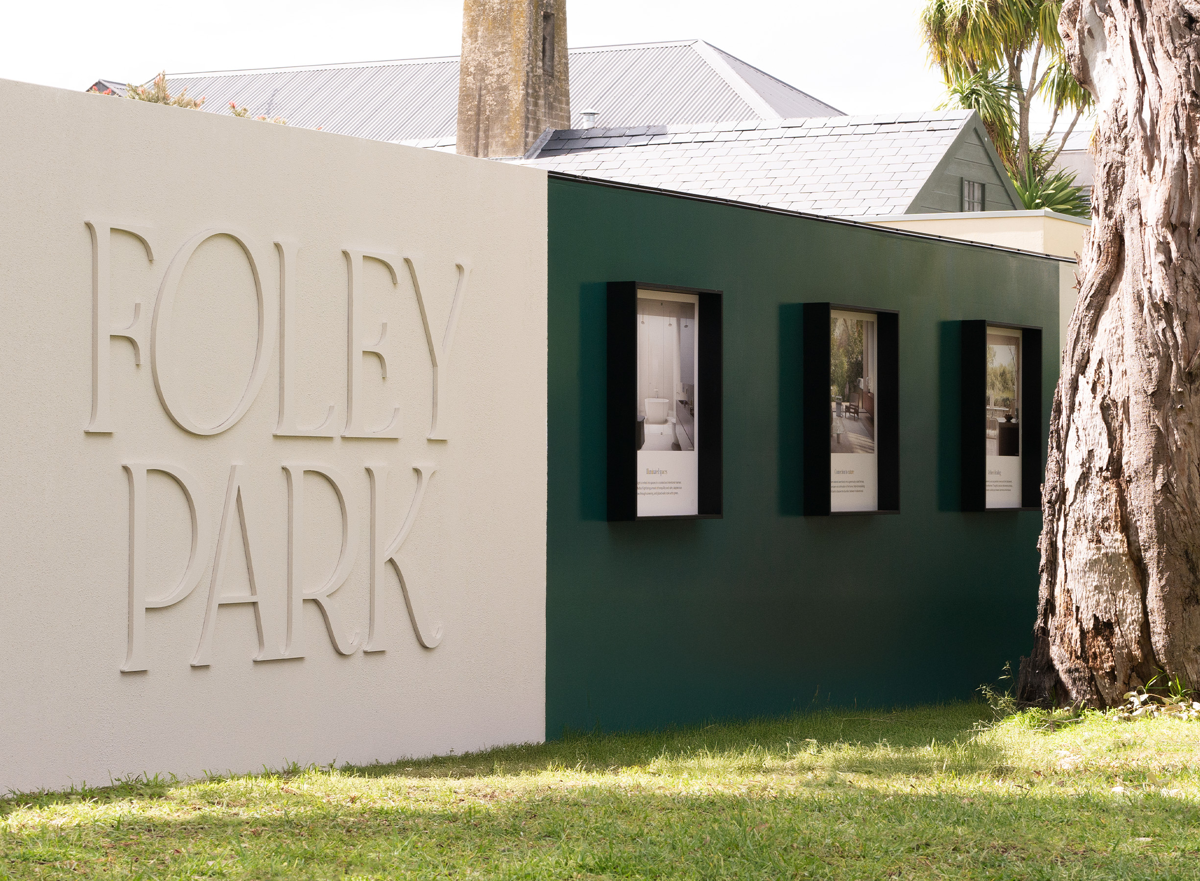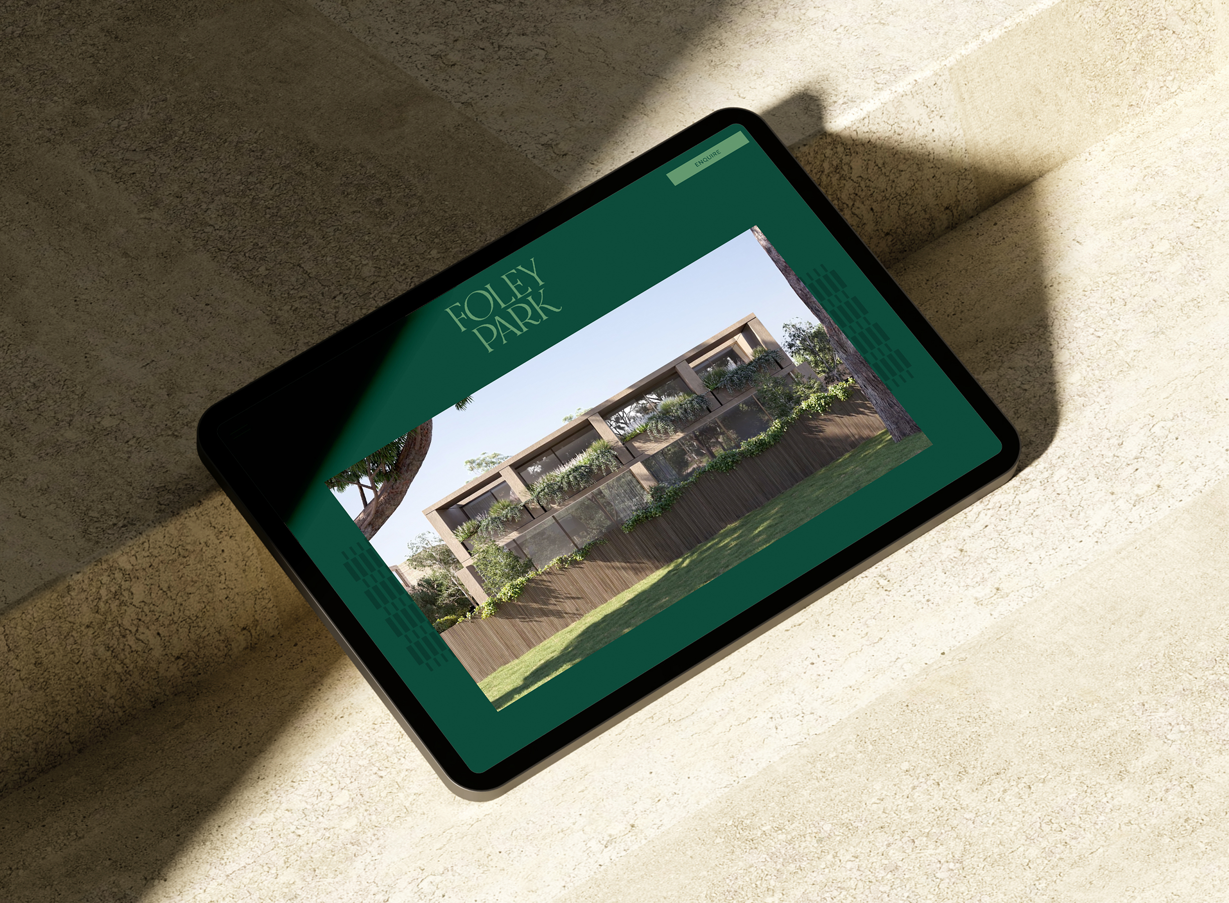 Our response was to look closely at the architecture itself. An art deco–inspired graphic language was developed as an interpretive echo of the building—abstracting brick coursing, latticework and moments of compression and release into a tactile pattern. Used sparingly, it adds texture and rhythm to the brand, mirroring the experience of moving through the building. The result is a visual identity that feels grounded, considered and enduring—one that allows Foley Park Kew to speak softly, yet with clarity.