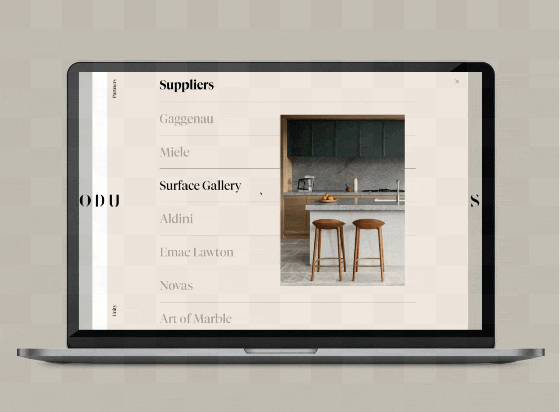 Design played a key role in elevating perception. Instead of a standard menu, we used a vertical sliding system to create an elegant and intuitive experience that reinforced ODUS’s attention to detail and innovation. The visual language was deliberately minimal but sophisticated, allowing future high-end projects to shine.